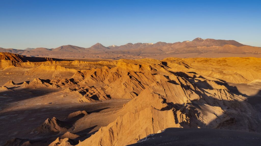 Nel tardo pomeriggio partirai per un’escursione nella Cordigliera del Sale, visitando la Valle di Marte (nota anche come Valle della Morte) e la celebre Valle della Luna. Qui potrai assistere a uno straordinario tramonto sul deserto di Atacama, tra giochi di luce e colori unici.